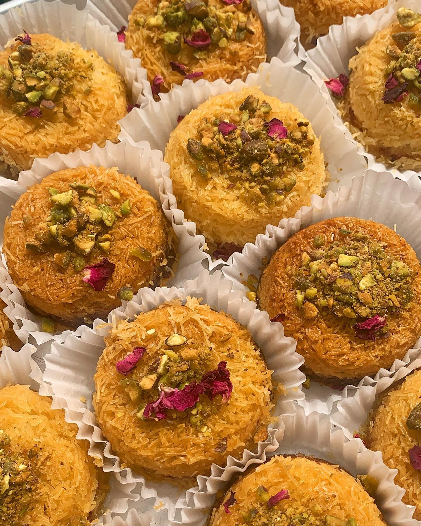 layers of crispy golden phyllo dough filled with ground walnuts & pistachio and coated in our signature syrup. the most prized middle eastern dessert - for good reason.